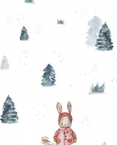 This design features a watercolor pattern with a rabbit in a red coat and hat.