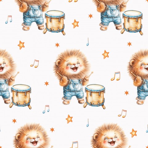 This design features a seamless pattern with a cute hedgehog playing the drums.