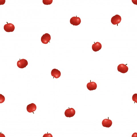Ce design présente un motif sans couture de pommes rouges sur fond blanc.