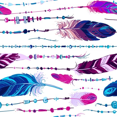 Questo disegno presenta piume e perle su uno sfondo bianco.