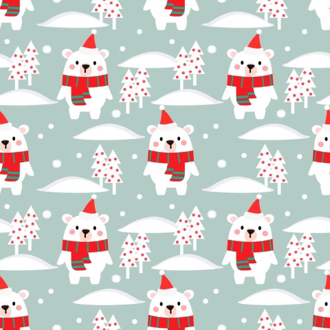 Questo disegno presenta un motivo senza cuciture con graziosi orsi polari su sfondo blu.