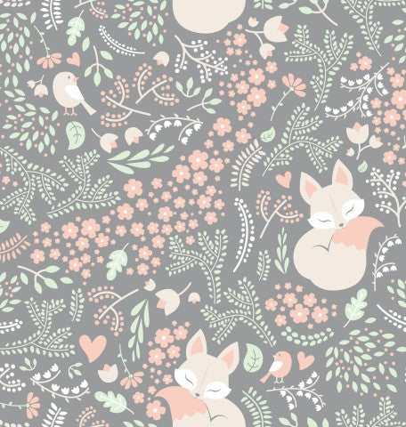Questo modello presenta un motivo senza cuciture con volpi e fiori.