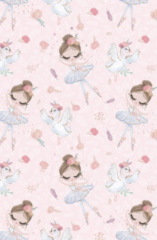 Questo disegno presenta un tessuto rosa con una ballerina e una bambina in tutù.