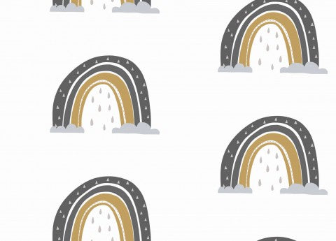 Questo design presenta un motivo senza cuciture con arcobaleni e nuvole.