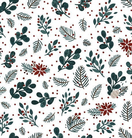 Questo disegno presenta un motivo natalizio senza soluzione di continuità con foglie e bacche rosse e verdi.