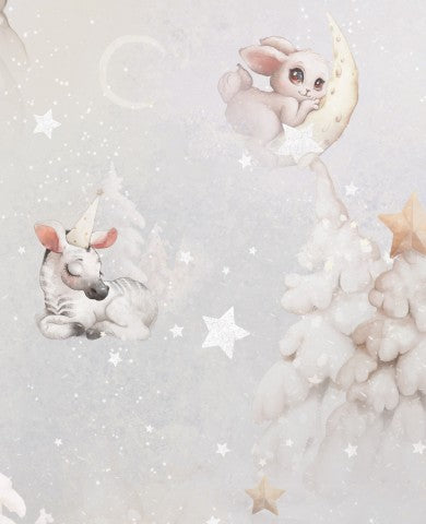 Questo disegno presenta un'immagine di carta da parati con animali e stelle.