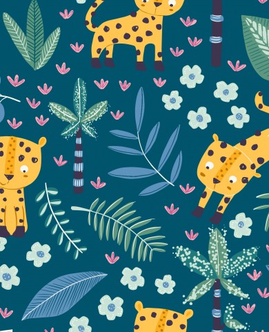 Raso di cotone con simpatico leopardo e piante