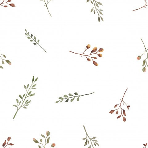 Questo modello presenta un motivo senza cuciture con rami e foglie acquerellati.