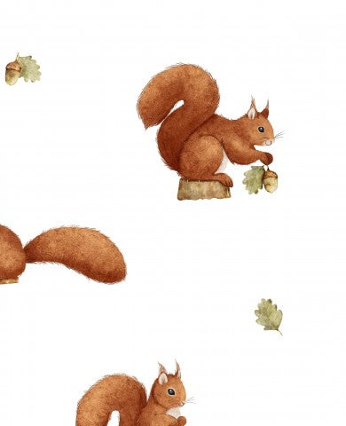 Mussola, un set di quattro illustrazioni ad acquerello di scoiattoli