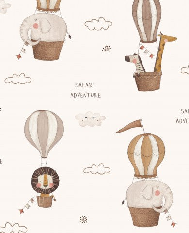Questo design presenta un motivo senza cuciture con animali che volano su mongolfiere.
