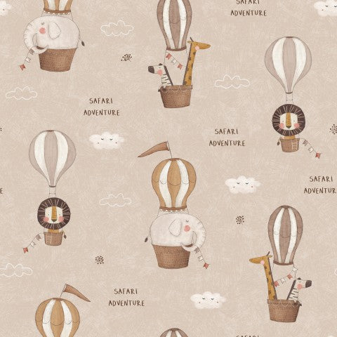 Animali e mongolfiere in raso di cotone