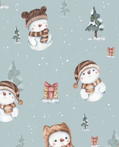 Questo modello presenta un motivo senza cuciture con pupazzi di neve in abiti invernali.