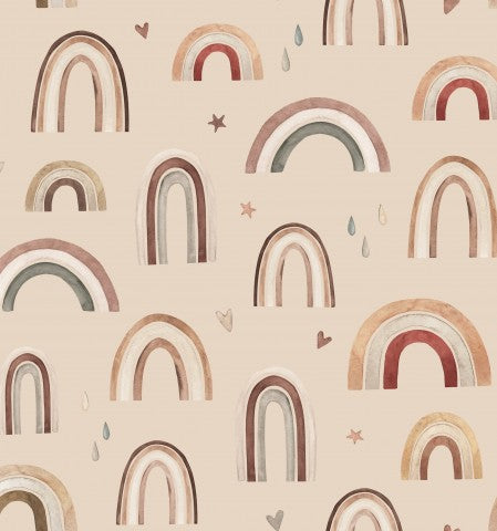 Questo modello presenta un motivo senza cuciture con arcobaleni e cuori.