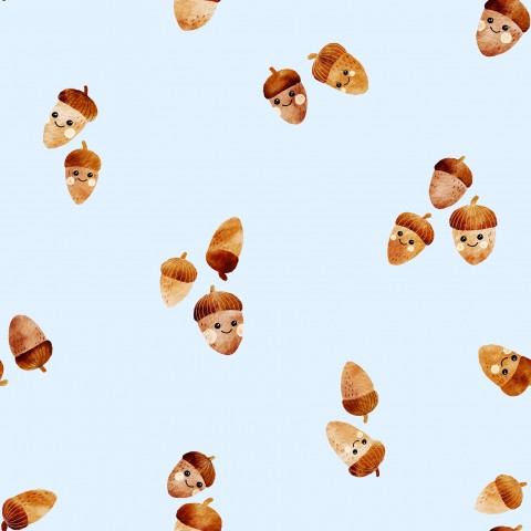 Questo disegno presenta un motivo di ghiande su uno sfondo blu.