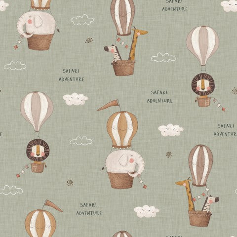Questo disegno presenta un motivo senza cuciture con animali in mongolfiere e nuvole.