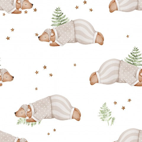 Questo design presenta un motivo senza cuciture con simpatici orsi e pini.