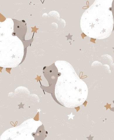 Questo modello presenta un motivo senza cuciture con graziosi ricci e stelle.