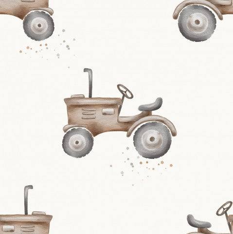 Questo design presenta un motivo senza cuciture di un trattore su sfondo bianco.