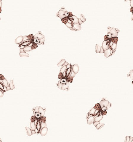 Questo design presenta un motivo senza cuciture di orsacchiotti su sfondo bianco.