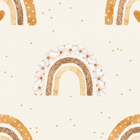 Questo design presenta un motivo senza cuciture con un arcobaleno su sfondo bianco.