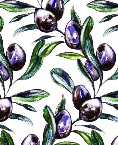 Questo disegno presenta un motivo acquerello senza cuciture con olive e foglie.