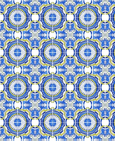 Questo disegno presenta un motivo blu e giallo su sfondo bianco.