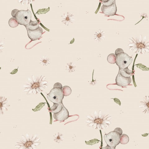 Questo design presenta un motivo senza cuciture con topolini e margherite.