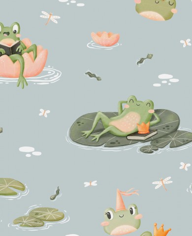 Questo disegno presenta rane e ninfee in uno stagno.
