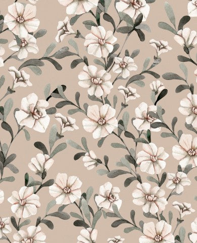 Questo design presenta un motivo floreale senza cuciture su uno sfondo beige.