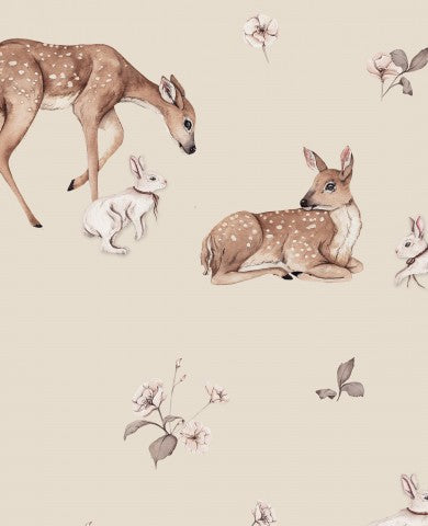 Questo disegno presenta una carta da parati con cervi e conigli.