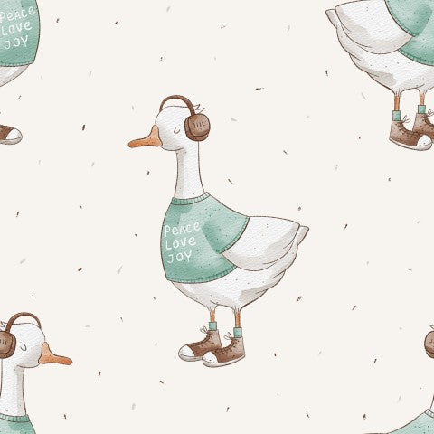 Questo modello presenta un motivo senza cuciture con un'anatra che indossa una maglietta.