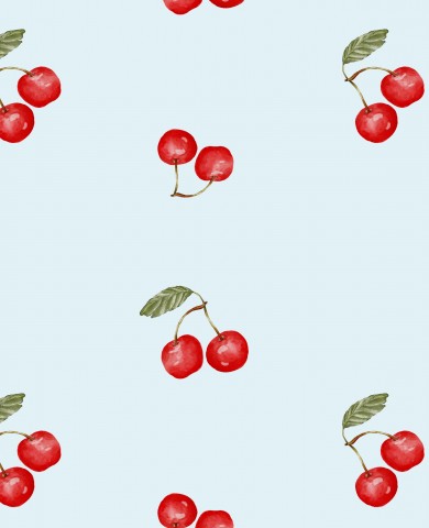 Questo design presenta un motivo con ciliegie su sfondo blu.