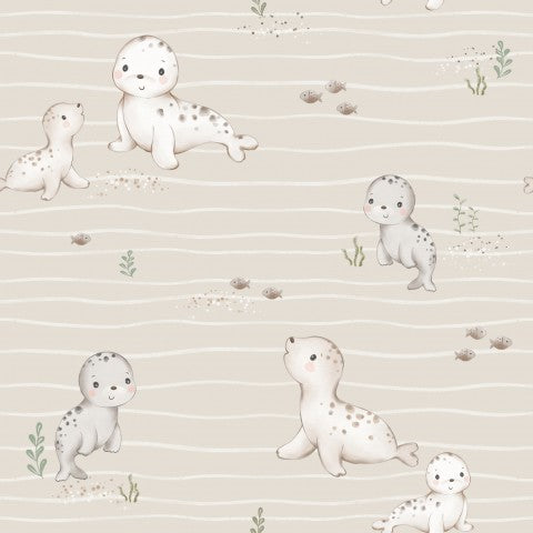 Questo design presenta un motivo senza cuciture con cuccioli di foca.