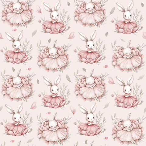 Questo disegno presenta un motivo senza cuciture con coniglietti e fiori.