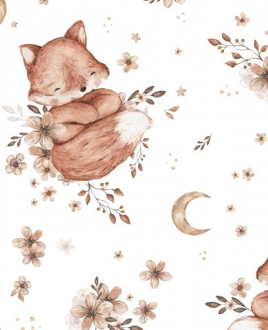 Questo design presenta un motivo senza cuciture con graziose volpi e fiori.