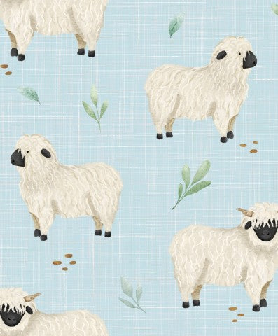 Questo disegno presenta un motivo a pecorella su sfondo blu.