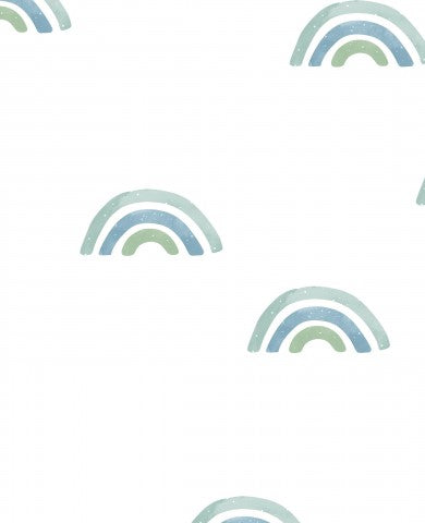 Questo design presenta uno sfondo bianco con arcobaleni blu e verdi.