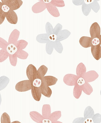 Questo disegno presenta fiori rosa e marroni su uno sfondo bianco.