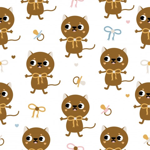 Questo design presenta un motivo senza cuciture con graziosi gatti marroni.
