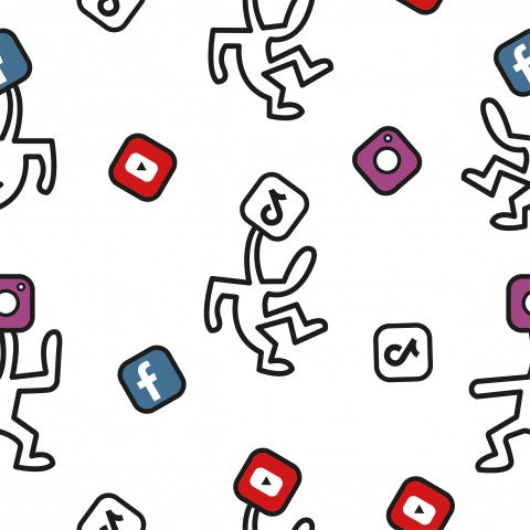 Questo design presenta un motivo senza cuciture con simboli sociali - vettore di stock.