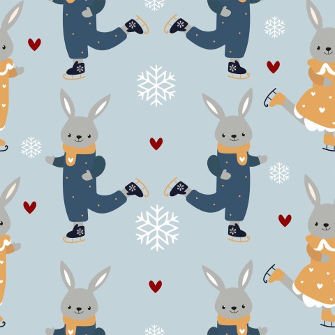 Questo modello presenta un motivo senza cuciture con conigli e fiocchi di neve.