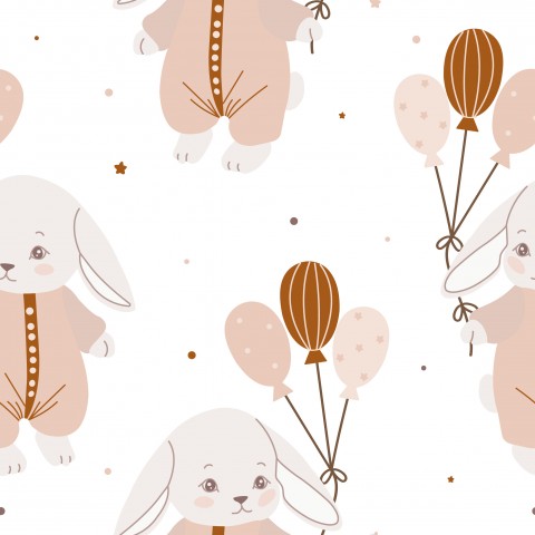 Questo design presenta un motivo senza cuciture con simpatici conigli e palloncini.