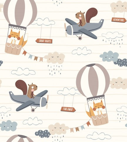 French Terry niedlichen Tieren, die in Heißluftballons fliegen