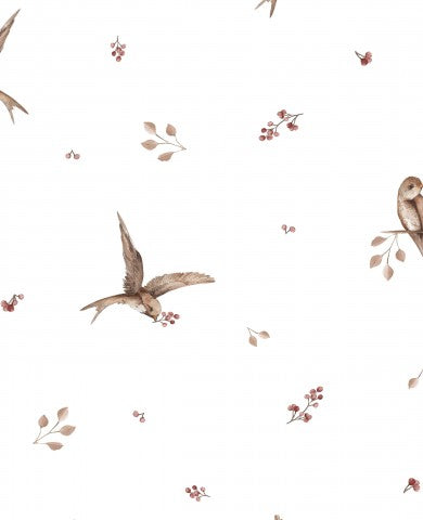 Dieses Design zeigt ein nahtloses Muster mit Vögeln und Beeren.