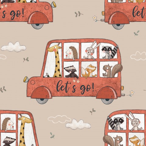Dieses Design zeigt ein nahtloses Muster mit Tieren in einem Bus.