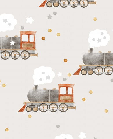 Dieses Design zeigt ein Muster mit einem Zug und Sternen darauf.
