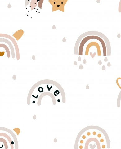 Dieses Design zeigt ein nahtloses Muster mit Regenbögen.