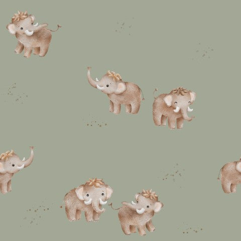 French Terry eine Gruppe von Elefanten auf grünem Hintergrund