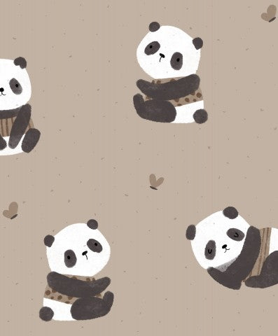 Satin Baumwolle Muster von Pandabären auf braunem Hintergrund