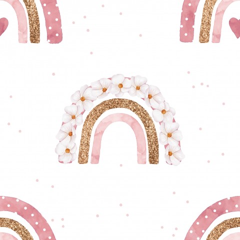 Dieses Design zeigt ein nahtloses Muster mit Aquarellregenbogen und Blumen.